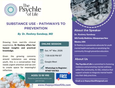 An awareness session for teenagers on understanding the risks of substance use, led by Dr. Reshmy Sandeep, Family Medicine specialist. Gain honest insights, practical knowledge, and space for meaningful reflection.