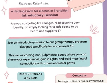 With a team of experienced mental health experts, we offer Counselling services, a wide range of mental health workshops, seminars, and customized programs tailored to meet the unique needs of our clients. Whether you are an individual seeking personal growth, a parent with an intent to support your child, a company aiming to enhance employee well-being, or an educational institution striving to prioritize student mental health, we have the expertise and resources to guide you on this transformative journey.